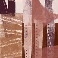 Collage van organische en geometrische vormen, penseelstreken, lijnen en texturen.