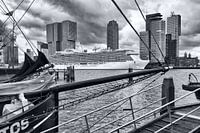 Symmetrisch lijnenspel tussen een oude boot in de Leuvehaven en de moderne Regal Princess cruiseship.