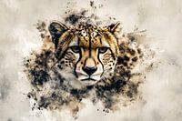 Deze prachtige digitale creatie combineert de realistische details van een cheeta met abstracte kunst. Het krachtige en sierlijke gezicht van de cheeta springt direct in het oog, omlijst door een artistieke mix van subtiele tinten en dynamische texturen. Perfect als wanddecoratie voor liefhebbers van dieren en moderne kunst. Het ontwerp brengt een gevoel van kracht en elegantie, waardoor het ideaal is voor diverse ruimtes zoals woonkamers of kantoren. Een uniek kunstwerk dat indruk maakt en blijft fascineren.