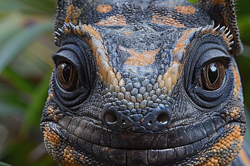 Dit opvallende en levendige kunstwerk toont een realistisch portret van een fascinerend reptiel. Met zijn gedetailleerde schubben en heldere kleuren, straalt dit ontwerp een bijzondere energie uit die elke ruimte zal opvrolijken. Het reptiel kijkt recht in de camera met een intense blik, wat een gevoel van connectie en levendigheid creëert. De achtergrond van het ontwerp bestaat uit natuurlijke elementen zoals bladeren, wat de rustgevende en organische sfeer versterkt. Dit kunstwerk is perfect voor wie houdt van natuur en dieren en een moderne, kleurrijke toevoeging zoekt voor hun interieur. Het is een unieke decoratieve keuze voor een kantoor, slaapkamer of elke andere ruimte waar een vleugje natuur gewenst is.
