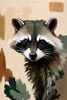 Dit prachtige schilderij toont een gedetailleerde en realistische afbeelding van een nieuwsgierige wasbeer. De expressieve ogen van het dier trekken je meteen aan, terwijl de zachte penseelstreken en subtiele kleuren zorgen voor een serene en uitnodigende sfeer. De abstracte achtergrond van warme beige tinten en groenachtige accenten contrasteert mooi met de fijne details van de vacht, waardoor het geheel een perfecte balans vormt tussen realisme en kunstzinnigheid. Dit ontwerp zou een geweldige aanvulling zijn in een moderne of minimalistische ruimte en past goed in diverse interieurs zoals een woonkamer, kantoor of zelfs een kunststudio.