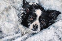 Dit prachtige schilderij toont een aandoenlijke hond die in de sneeuw ligt. Het realistische kunstwerk vangt de essentie van winterse dagen en de speelse natuur van honden. De kunstenaar heeft met precisie en oog voor detail de natte vacht en de blik in de ogen van de hond vastgelegd, wat het schilderij een levendig en authentiek gevoel geeft. Perfect voor dierenliefhebbers en kunstverzamelaars die hun interieur willen verrijken met een warme en ontroerende touch. Dit kunstwerk is een perfecte aanvulling voor elke ruimte en brengt een gevoel van kalmte en schoonheid in uw huis.