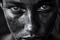Dit krachtige zwart-wit portret vangt de essentie van menselijke emotie met verbluffend detail. De intense blik trekt je onmiddellijk aan, terwijl de textuur van de huid en de subtiele contrasten een diepte en realisme toevoegen die bijna tastbaar zijn. Dit kunstwerk is een perfecte toevoeging voor liefhebbers van moderne en minimalistische kunst, die op zoek zijn naar een statement-stuk dat zowel elegant als diepgaand is. Hang het in een ruimte waar het tot zijn recht komt en een gesprek op gang brengt, zoals een kantoor of slaapkamer.