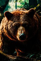 Dit prachtige kunstwerk brengt de kracht en schoonheid van de natuur tot leven. Het ontwerp toont een indrukwekkende, realistische beer met een intense blik, omgeven door de warme gloed van een natuurlijk boslandschap. De detaillering in de vacht en het lichtspel op de achtergrond geven de compositie een unieke dynamiek. Het schilderij ademt rust, maar ook kracht, en past perfect in moderne interieurs of klassieke ruimtes die iets unieks willen uitstralen. Ideaal voor de natuurliefhebber die op zoek is naar een blikvanger in huis of kantoor. Dit ontwerp straalt avontuur, elegantie en natuurverbondenheid uit.