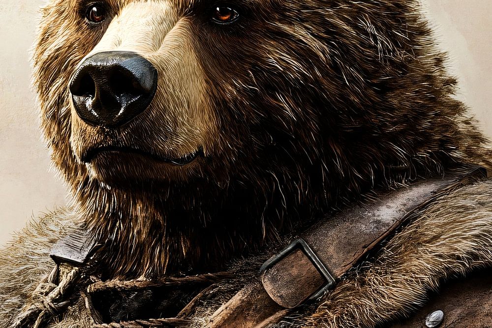 Dit unieke ontwerp toont een imposante beer die op een buitengewone manier tot leven is gebracht. Gekleed in een ruig harnas met een pijlenkoker, straalt de beer kracht en vastberadenheid uit. Het realisme en de aandacht voor detail maken dit kunstwerk bijzonder en intrigerend. Perfect als een eyecatcher in een woonkamer of kantoor, dit ontwerp combineert natuur en fantasie op een manier die zowel rustgevend als inspirerend is. Ideaal voor liefhebbers van dieren, natuur en buitengewone kunstwerken.