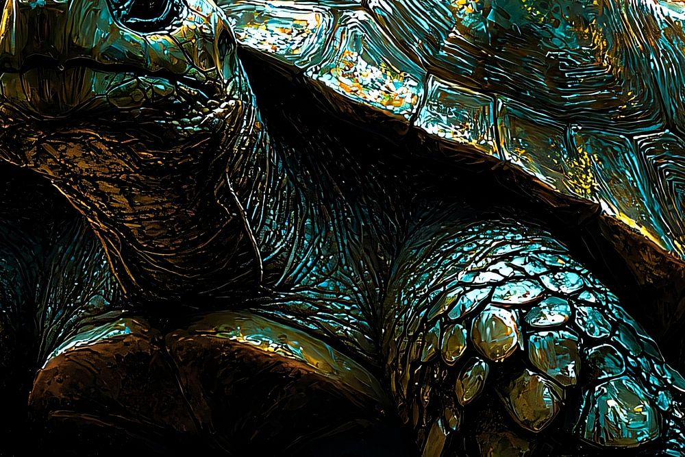 Dit prachtige kunstwerk toont een majestueuze schildpad in een zonovergoten bos. Het ontwerp straalt rust en kracht uit, terwijl de levendige details van de schildpad en het spel van licht en schaduw de kijker volledig meenemen in de natuurlijke setting. De rijke kleuren en realistische texturen maken dit een perfect decoratiestuk voor liefhebbers van natuur en dieren. Hang het in je woonkamer, kantoor of slaapkamer om een serene en indrukwekkende sfeer te creëren.