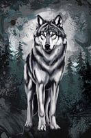 Realistische wolf in bos van Imperial Art House