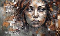 Schilderij portret in mixed media stijl met een grove grunge textuur in aardetinten.