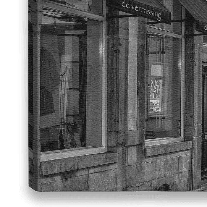 Koop de foto Rechtstraat - Maastricht - Wyck - Mestreech in zwart wit van Teun Ruijters als print op canvas, aluminium dibond, (ingelijste) fotoprint, behang en ArtFrame. Voor jou op maat geprint in Fine-Art kwaliteit.
