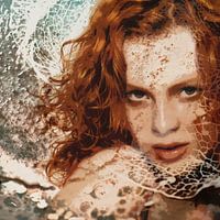 Portret van een mooie dame met Rood haar die de naam Ramona van mij kreeg. Het werk is digitaal bewerkt en gecombineerd met structuren uit de natuur.
