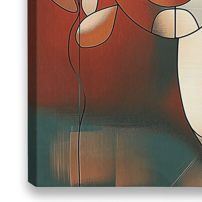 Figuratieve abstractie in aardetinten met het portret van een vrouw,bloemblaadjes en lijntekening elementen.