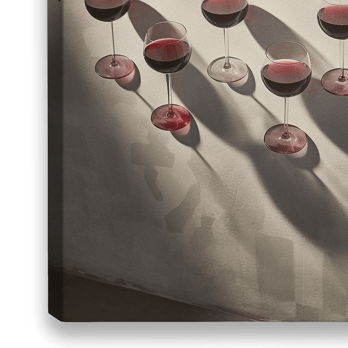 Surrealistisch, intrigerend en verrassend schilderij met een interessante kijk op rode wijn... De bijzondere compositie speelt met diepte, perspectief, licht en schaduw. Het dwingt de kijker om aandacht te schenken aan elk detail. Meer desoriëntatie en verwondering? Het herdefinieert onze perceptie van alledaagse objecten en brengt ze…