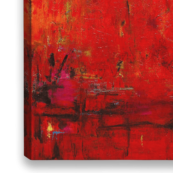 Als je van rood houdt dan is dit jouw kunstwerk. Een abstract schilderij met roodtinten en daarin subtiel enkele andere kleuren. Zo wordt het een spannend geheel en een absolute blikvanger.