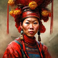 Koop dit portret Red dzao vrouw van Gert-Jan Siesling op canvas, aluminium dibond, (ingelijste) fotoprint, behang en ArtFrame, op maat geprint in Fine-Art kwaliteit.