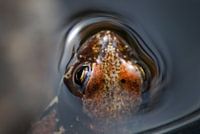 Een rode kikker in een vijver in Almere.