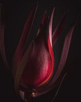 Rood blad. Sandra Hazes fine art fotografie. Door creatief gebruik te maken van focus, heldere kleuren, licht en schaduw, ontstaat er unieke magische en donkere stijl. Haal hiermee de natuur in huis, en geniet van de bijzondere sfeer.
