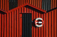 Deze rode boothuisjes staat in de westelijke Zweedse provincie Bohuslän. Het karakteristieke rood wordt ook wel falurood genoemd, naar de mijn waar de kleur vandaan komt.