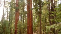 Dichtbegroeid oerbos met de vele lange redwoods in Californië, Amerika