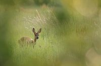 De ree op de foto was erg schuw. Van achter een struik kon ik door de takken heen net één foto maken. Het geeft de foto iets extra's, alsof je zelf de ree staat te bespieden. De foto is gemaakt in het Cirkelbos bij Almere Haven.