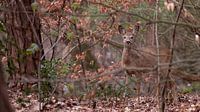 Ze houdt zich perfect stil. Haar kleur gaat op in het bos. Zo kan ze minutenlang blijven staan, vertrouwend op haar schutkleur.