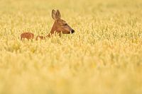 Deze jonge ree in het graan denkt dat hij onzichtbaar is.