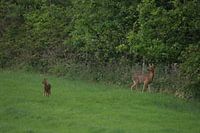 #Ameland #Buren Reegeit met jong op een mooie avond in juni .