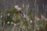 Er is weinig dat reeën ontgaat. Met gespitste oren kijkt deze bok je aan.