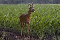 Reebok aan de rand van een maïsveld in Drenthe