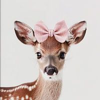 Deze betoverende muurschildering toont een jong hertje met een roze strik, die perfect is voor kinderkamers of babykamers. De minimalistische achtergrond laat het schattige hertje centraal staan en brengt een rustige, liefdevolle sfeer in elke kamer. Ideaal voor dierenliefhebbers en ouders die op zoek zijn naar een schattig en stijlvol accent voor hun kinderinterieur. Een echte blikvanger die vreugde en zachtheid uitstraalt.