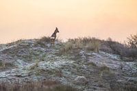 Ree in natuurgebied Berkheide. Het duingebied Berkheij tussen Wassenaar en Katwijk met zijn vele mooie plekjes. Als het zonlicht over de duinen strijkt is het steeds weer een adembenemend schouwspel van licht en stilte. De duinen in de verte zijn de zeereep met daarachter het strand en de zee.