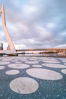 reflecterend zonlicht tijdens zonsopkomst Erasmusbrug Rotterdam