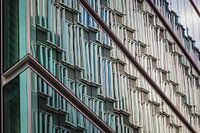 Reflectie in de glazen panelen van de kantoor gebouwen van het zaken district in hartje London.