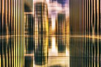 Spiegeling van abstracte hoogbouwgevels in Düsseldorf Media Harbour aan de Rijn in Duitsland
