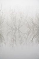 Een mistige dag in de buurt van Udenhout, Noord Brabant. Langs de rand van een zandwinput stonden deze struiken zich roerloos te spiegelen in het water.