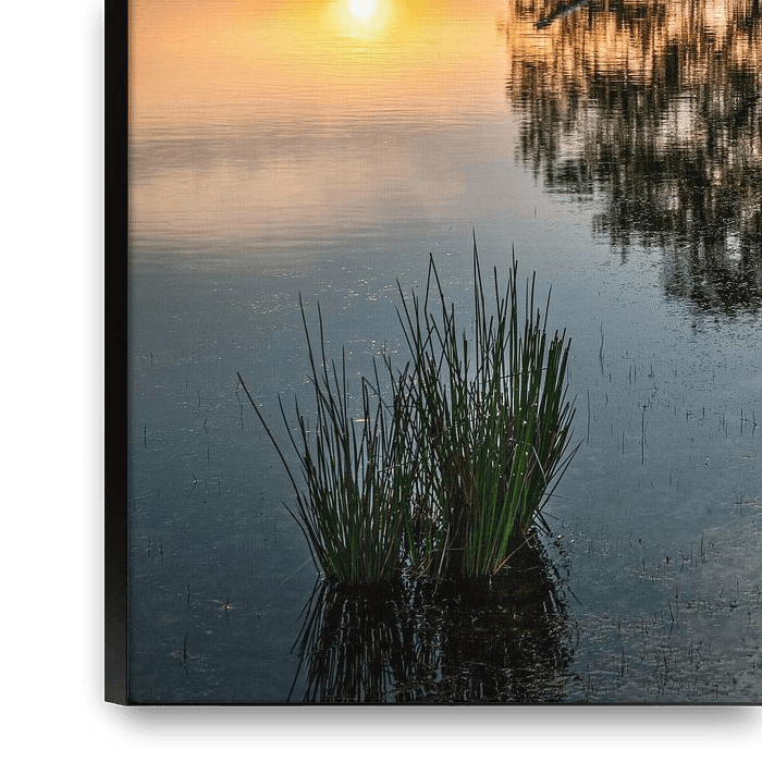 Koop dit landschapskunstwerk Reflectie in het ven in de avondzon van Erwin Pilon op canvas, aluminium dibond, (ingelijste) fotoprint, behang en ArtFrame, op maat geprint in Fine-Art kwaliteit.