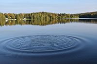 Reflectie op het meer in de herfst, Sainte-Apolline, Québec, Canada