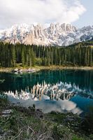 Koop dit landschapskunstwerk Reflectie op het meer van Carezza van swc07 op canvas, aluminium dibond, (ingelijste) fotoprint, behang en ArtFrame, op maat geprint in Fine-Art kwaliteit.