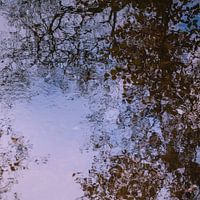 Over ‘Reflectie van bomen takken en bladeren in het water.’ van Idema Media