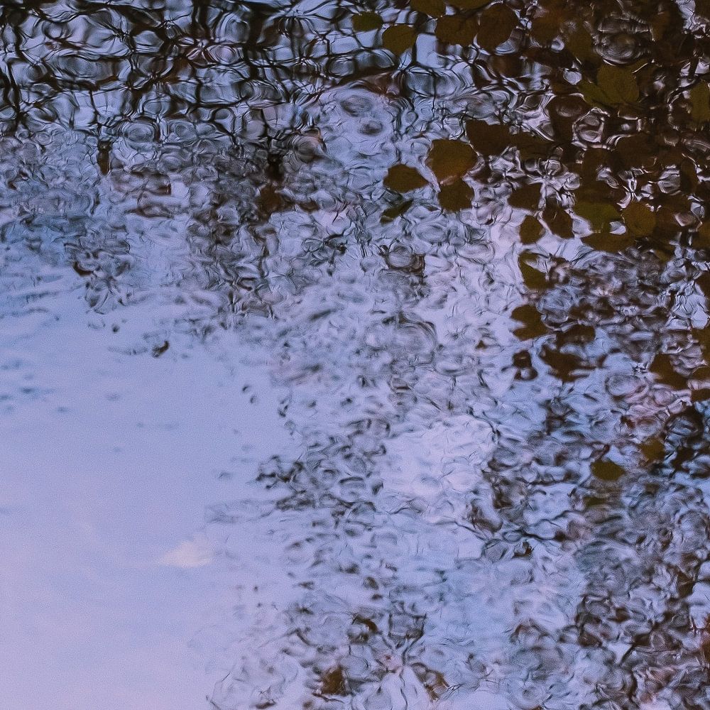 Het bos in de herfst, de takken, bomen en bladeren vormen een mooie reflectie in het water van een stroompje door het bos.