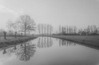 Reflectie in het water van de bomen aan De Mark in Ulvenhout bij Breda in Noord-Brabant in Nederland.