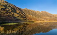Reflecties van bergen in Loch Achtriochtan in het licht van de late middag. Dit loch (meer) ligt in de buurt van Glencoe, Schotland.