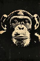 Deze artistieke creatie brengt een Modern twist in de wereld van dierlijke portretten met een focus op stedelijke street art. Het ontwerp toont een aap in gedetailleerde zwart-wit tinten, waarbij de expressieve ogen en de complexe textuur van de vacht direct de aandacht grijpen. Omringd door een onregelmatige achtergrond die bestaat uit diepe zwarten en goudachtige spatten, echoot het beeld de chaos en schoonheid van het stadsleven. Ideaal voor een Modern woonkamer of een dynamische werkruimte, dit stuk voegt een vleugje wildheid en rauwe emotie toe aan elk interieur.