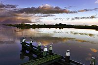 Reflectie van wolkenlucht in stilstaand water