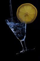 Waterstraal in glas met schijfje citroen