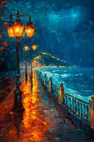 In de schemering weerkaatst het warme licht van de lantaarns op de met regen doordrenkte stoep, terwijl de golven zachtjes tegen de promenade slaan. Een vleugje melancholie doordringt de koele avondlucht en de glinsterende weerspiegelingen nodigen je uit om even stil te staan en te genieten van de onbeschrijfelijke schoonheid van het…