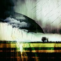 Dit semi-abstracte digitale schilderij is een moderne weergave van een herfst veld tijdens een regenbui. Het kleurenpalet is gebaseerd op aardekleuren, met tonen van bruin, groen en geel. Het beeld toont een geabstraheerde weergave van de regenbui, waarbij de regendruppels en het gevoel van beweging in het beeld worden weergegeven door…