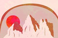 Een abstract regenboog berglandschap op een eerder ontwikkelde collage met een impressie van Scandinavische kunst uit Noord-Europa.
