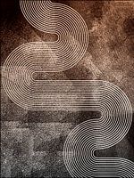 Een abstract schilderij van organische geometrische regenboogvormen op diepe textuur met een indruk van Scandinavische kunst uit Noord-Europa.