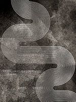 Een abstract schilderij van organische geometrische regenboogvormen op diepe textuur met een indruk van Scandinavische kunst uit Noord-Europa.