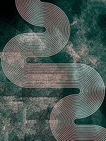 Een abstract schilderij van organische geometrische regenboogvormen op diepe textuur met een indruk van Scandinavische kunst uit Noord-Europa.